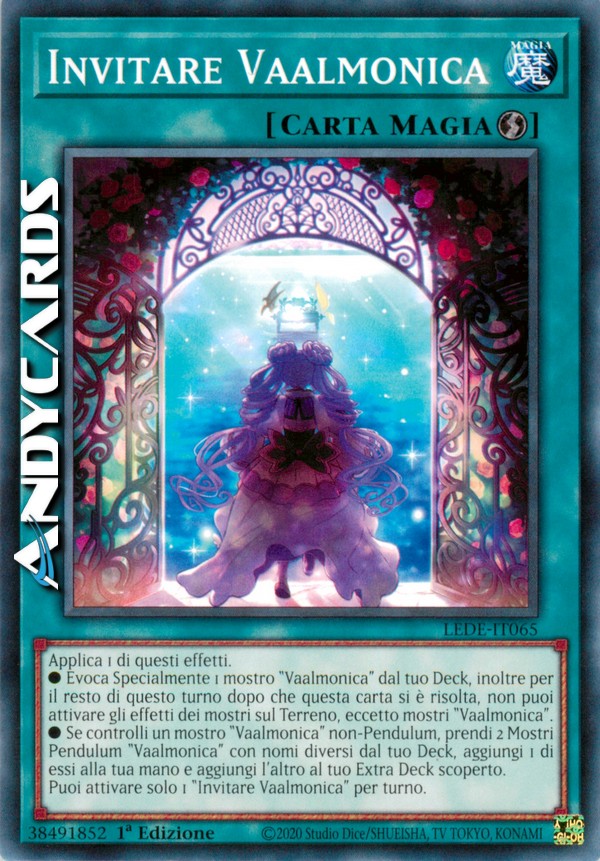 ●Evoca Specialmente 1 mostro "Vaalmonica" dal tuo Deck, inoltre per il resto di questo turno dopo che questa carta si è risolta, non puoi attivare gli effetti dei mostri sul Terreno, eccetto mostri "Vaalmonica".