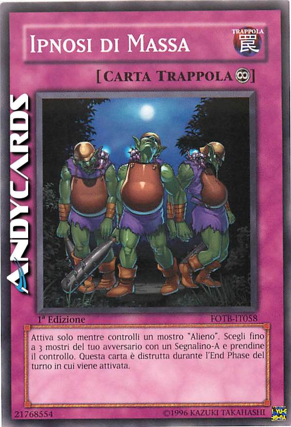 Attiva solo mentre controlli un mostro "Alieno". Scegli fino a 3 mostri del tuo avversario con un Segnalino-A e prendine il controllo. Questa carta è distrutta durante l'End Phase del turno in cui viene attivata.