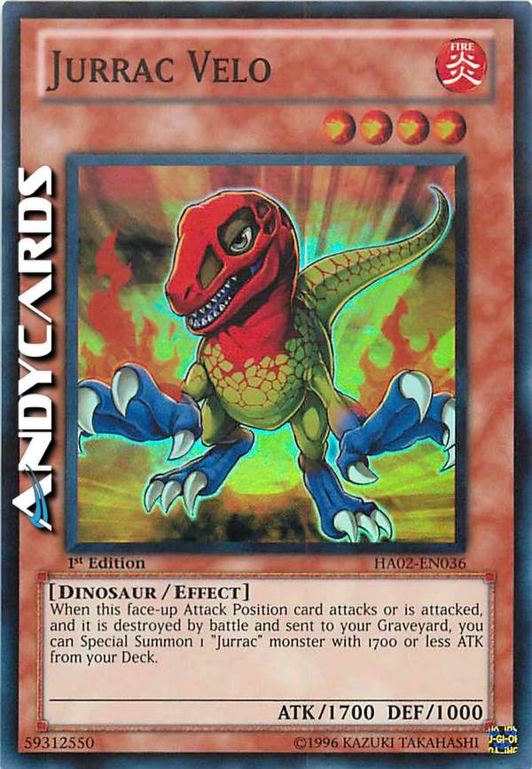 Quando questa carta scoperta in Posizione di Attacco attacca o viene attaccata e viene distrutta in battaglia e mandata al tuo Cimitero, puoi Evocare Specialmente 1 mostro "Jurrac" con ATK di 1700 o inferiore dal tuo Deck.