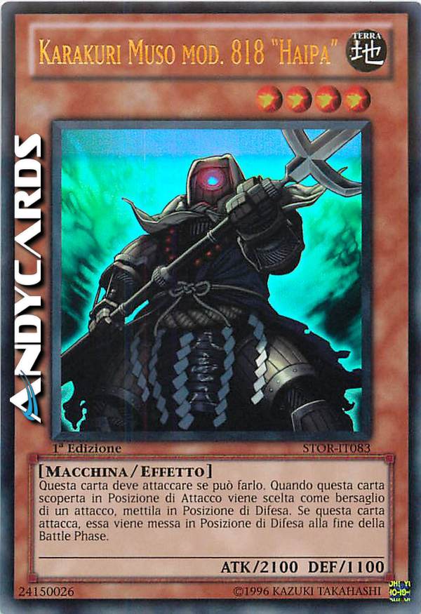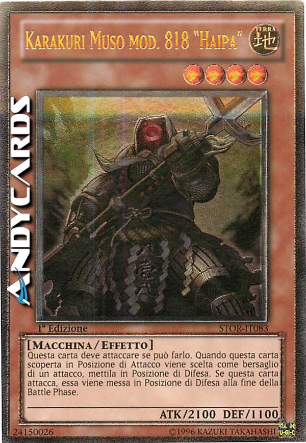 Questa carta deve attaccare se può farlo. Quando questa carta scoperta in Posizione di Attacco viene scelta come bersaglio di un attacco, mettila in Posizione di Difesa. Se questa carta attacca, essa viene messa in Posizione di Difesa alla fine della Battle Phase.