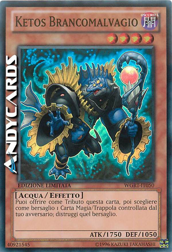 Puoi offrire come Tributo questa carta per scegliere come bersaglio 1 Carta Magia/Trappola controllata dal tuo avversario; distruggi quel bersaglio.