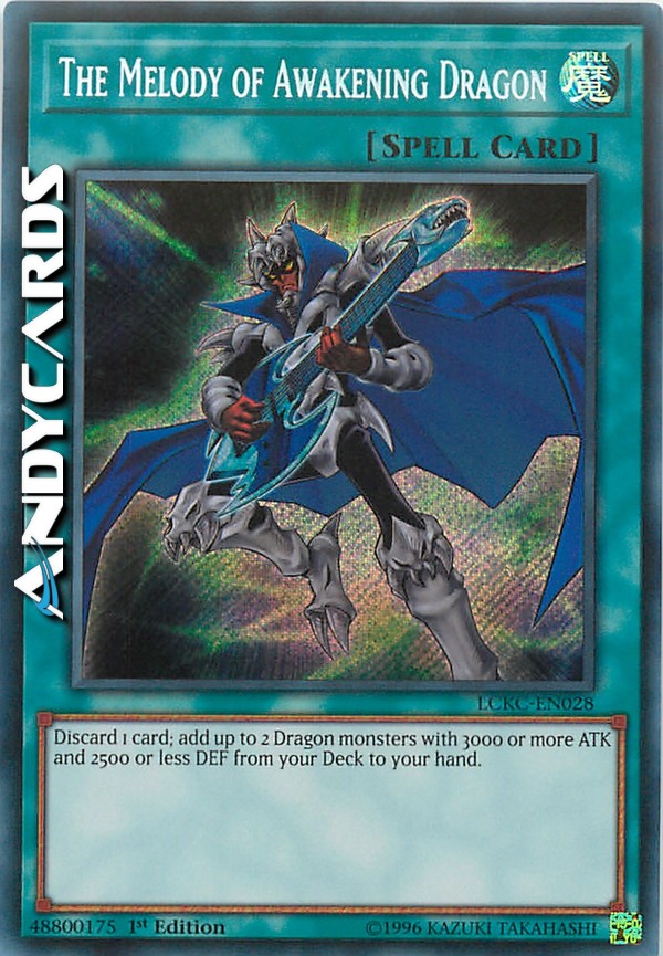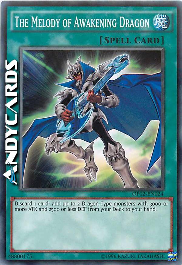 Scarta 1 carta; aggiungi fino a 2 mostri Drago con un ATK di 3000 o superiore e un DEF di 2500 o inferiore dal tuo Deck alla tua mano.