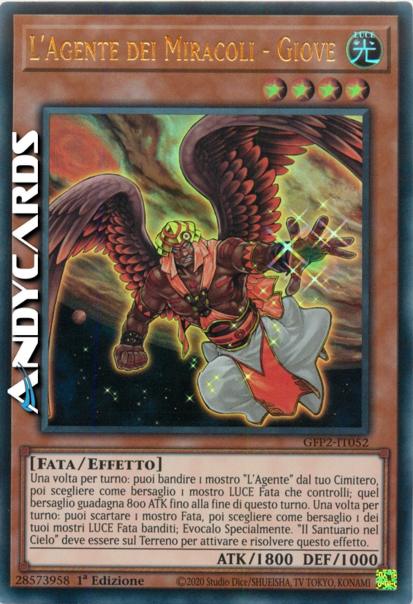 Una volta per turno, puoi rimuovere dal gioco 1 mostro "L'Agente" nel tuo Cimitero per scegliere 1 mostro LUCE di Tipo Fata scoperto che controlli. Il mostro scelto guadagna 800 ATK fino alla End Phase. Mentre "Il Santuario nel Cielo" è scoperto sul Terreno, una volta per turno puoi scartare 1 mostro di Tipo Fata per scegliere 1 dei tuoi mostri LUCE di Tipo Fata rimossi dal gioco ed Evocarlo Specialmente.