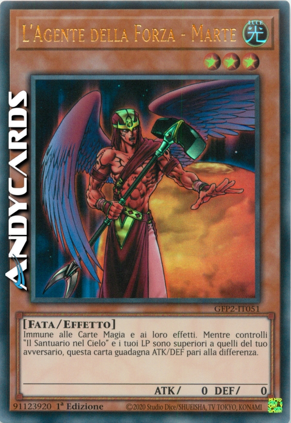 Questa Carta è immune dagli effetti di qualunque carta magia. Se hai il SANTUARIO NEL CIELO scoperto sul tuo terreno e i tuoi Life Points sono superiori a quelli del tuo avversario aumenta ATK e DEF di questa carta della differenza fra i tuoi Life Points e quelli del tuo avversario.