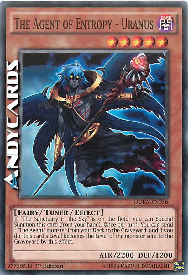 se "Il Santuario Nel Cielo" è sul terreno, puoi Evocare Specialmente questa carta (dalla tua mano). Una volta per turno: puoi mandare 1 mostro "L'Agente" dal tuo Deck al Cimitero e, se lo fai, il livello di questa carta diventa il Livello del mostro mandato al Cimitero da questa carta.