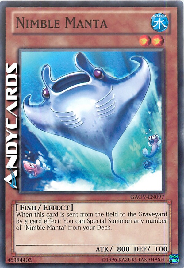 When this card is sent from the field to the Graveyard by a card effect: You can Special Summon any number of "Nimble Manta" from your Deck.