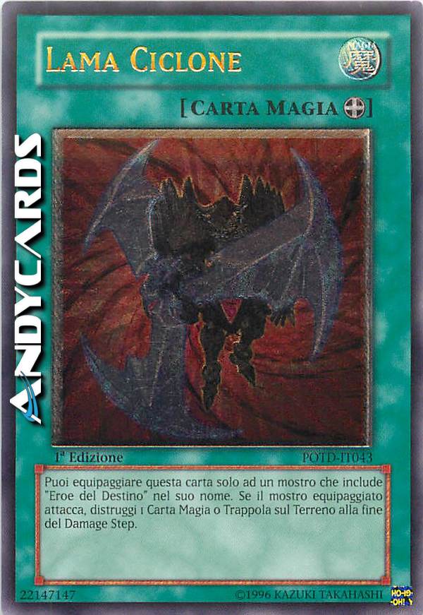 Puoi equipaggiare questa carta solo ad un mostro che include "Eroe del Destino" nel suo nome. Se il mostro equipaggiato attacca, distruggi 1 Carta Magia o Trappola sul Terreno alla fine del Damage Step.
