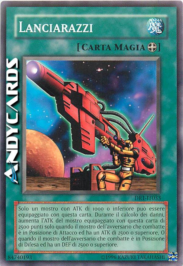 Solo un Mostro con ATK di 1000 o inferiore può essere equipaggiato con questa carta. Durante il calcolo dei danni, aumenta l'ATK del mostro equipaggiato con questa carta di 2500 punti solo quando il mostro dell'avversario che combatte è in posizione di Attacco ed ha un ATK di 2500 o superiore. O quando il mostro dell'avversario che combatte è in Posizione di Difesa ed ha un DEF di 2500 o superiore.