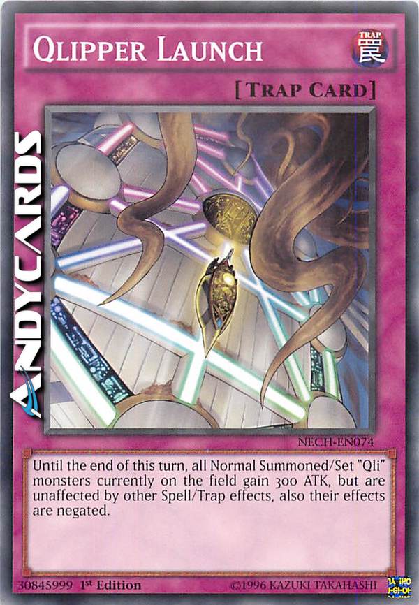 Fino alla fine di questo turno, tutti i mostri "Qli" Evocati Normalmente/Posizionati attualmente sul Terreno guadagnano 300 ATK, ma sono immuni agli effetti delle altre Magie/Trappole, inoltre i loro effetti sono annullati.