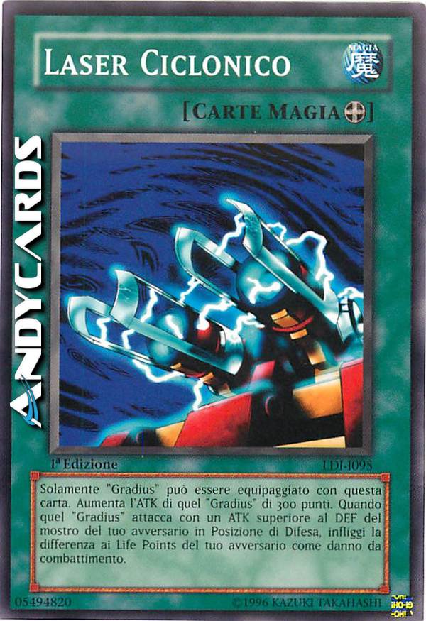 Solamente "Gradius" può essere equipaggiato con questa carta. Aumenta l'ATK di quel "Gradius" di 300 punti.Quando quel "Gradius" attacca con un ATK superiore al DEF del mostro del tuo avversario in Posizione di Difesa, infliggi la differenza ai Life Points del tuo avversario come danno da combattimento.