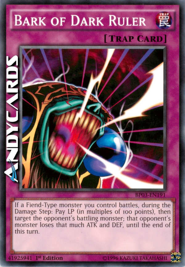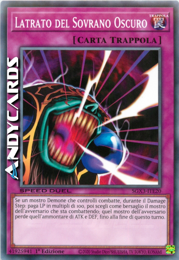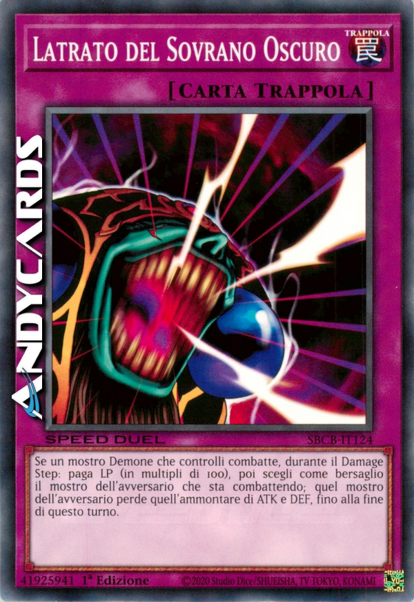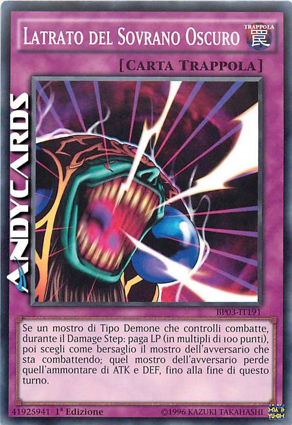 Se un mostro di Tipo Demone che controlli combatte, durante il Damage Step: paga LP (in multipli di 100 punti), poi scegli come bersaglio il mostro dell'avversario che sta combattendo; quel mostro dell'avversario perde quell'ammontare di ATK e DEF, fino alla fine di questo turno.