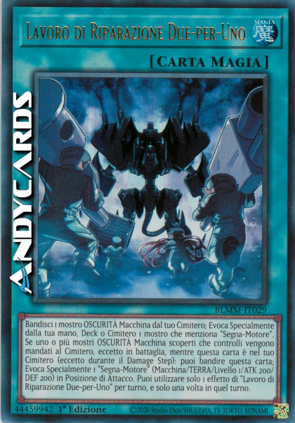 Banish 1 DARK Machine monster from your GY; Special Summon 1 monster from your hand, Deck, or GY that mentions "Engine Token". If a face-up DARK Machine monster(s) you control is sent to the GY, except by battle, while this card is in your GY (except during the Damage Step): You can banish this card; Special Summon 1 "Engine Token" (Machine/EARTH/Level 1/ATK 200/DEF 200) in Attack Position. You can only use 1 "Two-for-One Repair Job" effect per turn, and only once that turn.