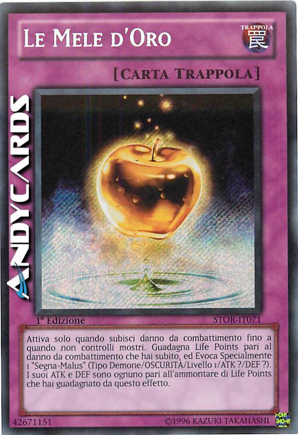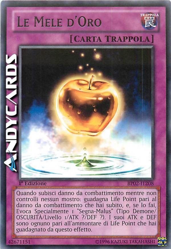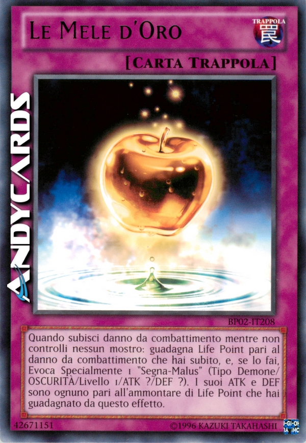 Quando subisci danno da combattimento mentre non controlli nessun mostro: guadagna LP pari al danno da combattimento che hai subito, e, se lo fai, Evoca Specialmente 1 "Segna-Malus" (Demone/OSCURITÀ/Livello 1 /ATK ?/DEF ?). I suoi ATK/DEF sono ognuno pari all'ammontare di LP che hai guadagnato con questo effetto.