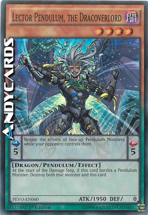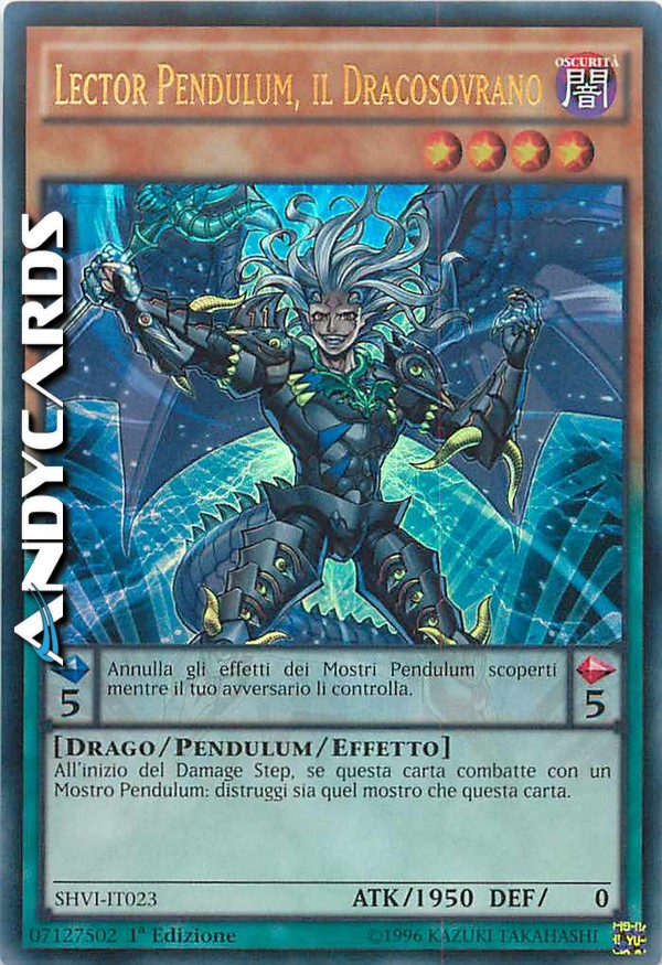 Annulla gli effetti dei Mostri Pendulum scoperti mentre il tuo avversario li controlla. - All'inizio del Damage Step, se questa carta combatte con un Mostro Pendulum: distruggi sia quel mostro che questa carta.