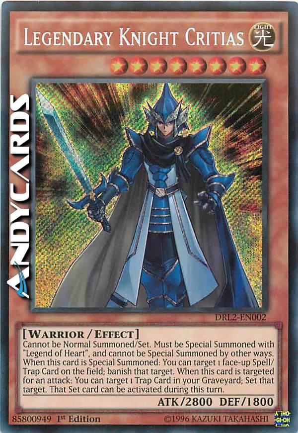 Non può essere Evocato Normalmente/Posizionato. Deve essere Evocato Specialmente con "Leggenda del Cuore", e non può essere Evocato Specialmente in altri modi. Quando questa carta viene Evocata Specialmente: puoi scegliere come bersaglio 1 Carta Magia/Trappola scoperta sul Terreno; bandisci quel bersaglio. Quando questa carta viene scelta come bersaglio per un attacco: puoi scegliere come bersaglio 1 Carta Trappola nel tuo Cimitero; Posiziona quel bersaglio. Quella carta Posizionata può essere attivata durante questo turno.