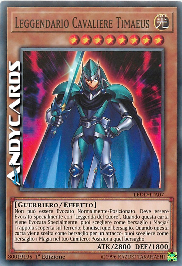 Non può essere Evocato Normalmente/Posizionato. Deve essere Evocato Specialmente con "Leggenda del Cuore". Quando questa carta viene Evocata Specialmente: puoi scegliere come bersaglio 1 Magia/Trappola scoperta sul Terreno; bandisci quel bersaglio. Quando questa carta viene scelta come bersaglio per un attacco: puoi scegliere come bersaglio 1 Magia nel tuo Cimitero; Posiziona quel bersaglio.
