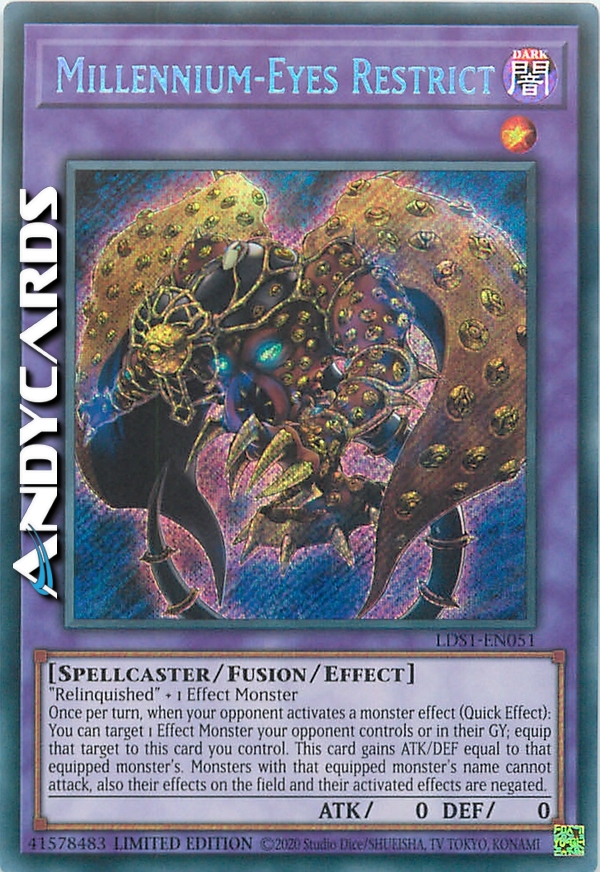 Una volta per turno, quando il tuo avversario attiva l'effetto di un mostro (Effetto Rapido): puoi scegliere come bersaglio 1 Mostro con Effetto controllato dal tuo avversario o nel suo Cimitero; equipaggia quel bersaglio a questa carta che controlli. Questa carta guadagna ATK/DEF pari a quelli di quel mostro equipaggiato. I mostri con il nome di quel mostro equipaggiato non possono attaccare, inoltre i loro effetti sul Terreno e i loro effetti attivati sono annullati.
