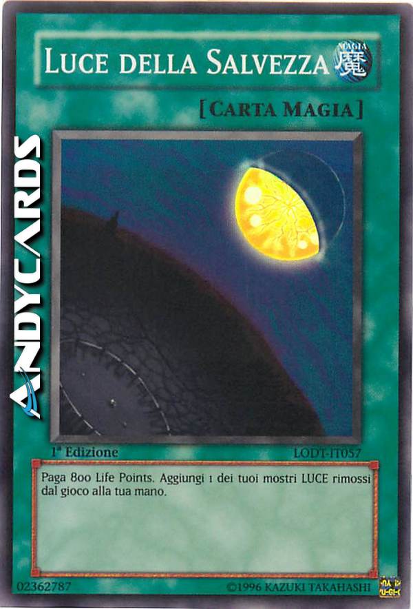 Paga 800 Life points. Aggiungi 1 dei tuoi mostri LUCE rimossi dal gioco alla tua mano.