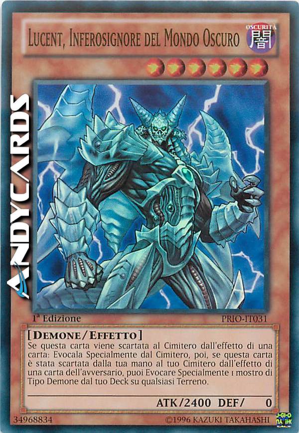 Se questa carta viene scartata al Cimitero dall'effetto di una carta: Evocala Specialmente dal Cimitero, poi, se questa carta è stata scartata dalla tua mano al tuo Cimitero dall'effetto di una carta dell'avversario, puoi Evocare Specialmente 1 mostro di Tipo Demone dal tuo Deck su qualsiasi Terreno.