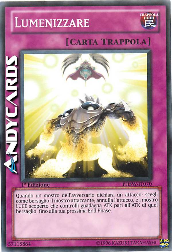 Quando un mostro dell'avversario dichiara un attacco: scegli come bersaglio il mostro attaccante; annulla l'attacco, e 1 mostro LUCE scoperto che controlli guadagna ATK pari all'ATK di quel bersaglio, fino alla tua prossima End Phase.