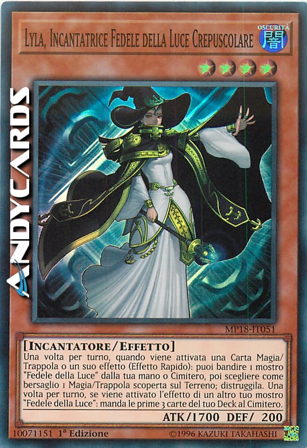 Una volta per turno, quando viene attivata una Carta Magia/Trappola o un suo effetto (Effetto Rapido): puoi bandire 1 mostro "Fedele della Luce" dalla tua mano o Cimitero, poi scegliere come bersaglio 1 Magia/Trappola scoperta sul Terreno; distruggila. Una volta per turno, se viene attivato l'effetto di un altro tuo mostro "Fedele della Luce": manda le prime 3 carte del tuo Deck al Cimitero.