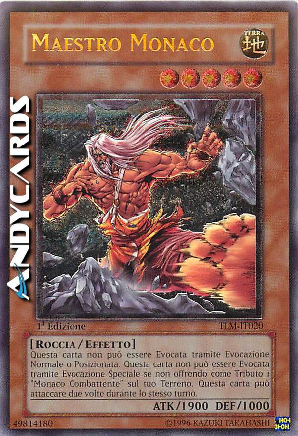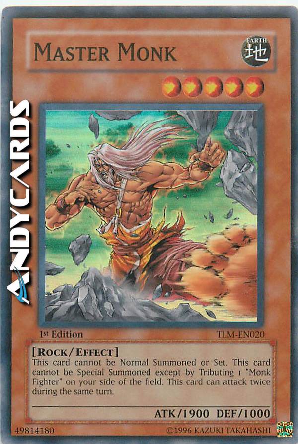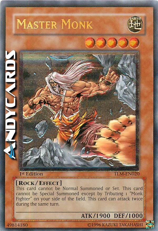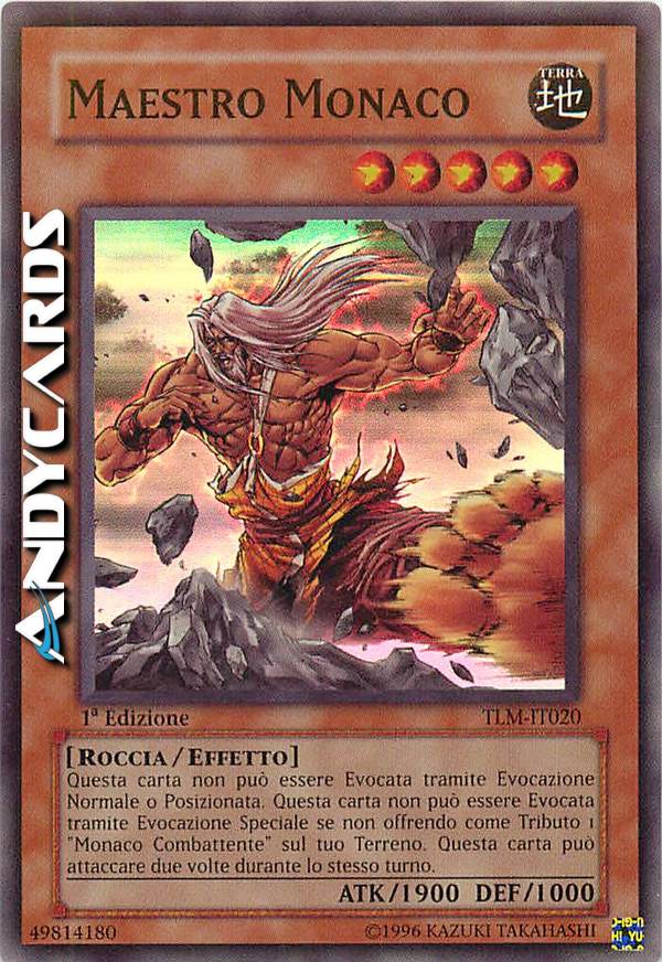 Questa carta non può essere Evocata tramite Evocazione Normale o Posizionata. Questa carta non può essere Evocata tramite Evocazione Speciale se non offrendo come Tributo 1 "Monaco Combattente" sul tuo Terreno. Questa carta può attaccare due volte durante lo stesso turno.