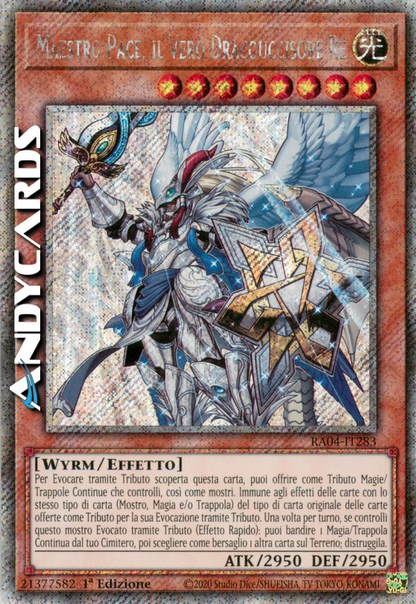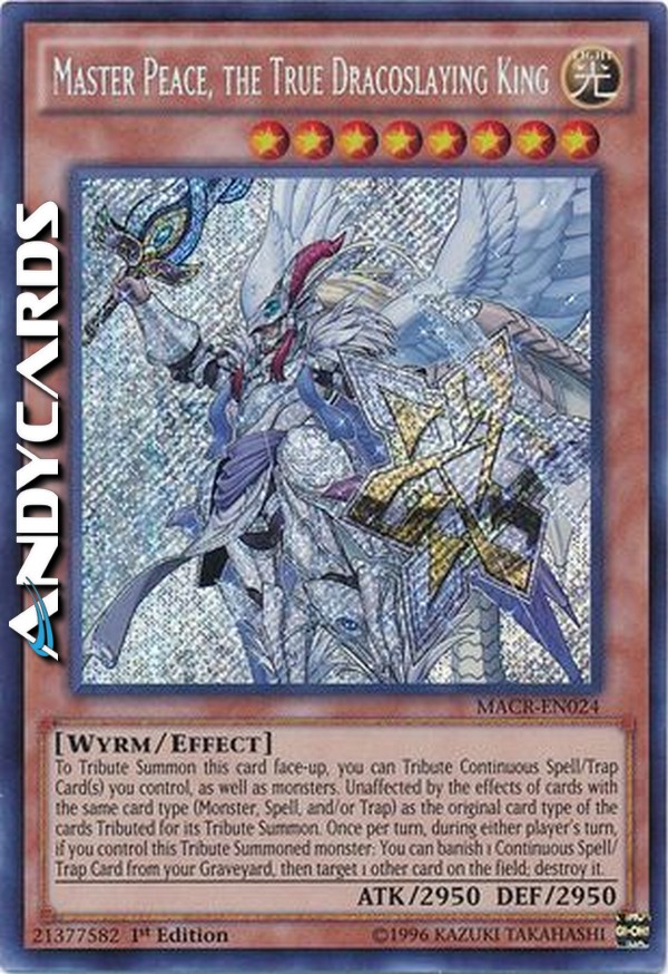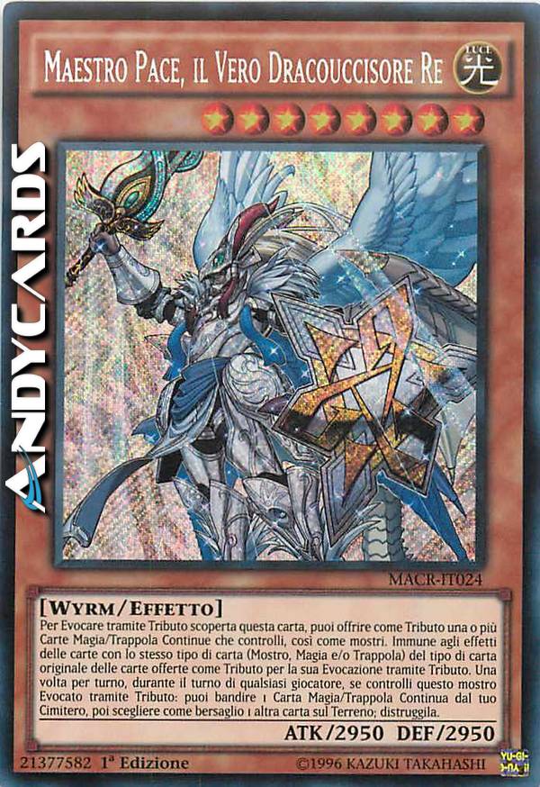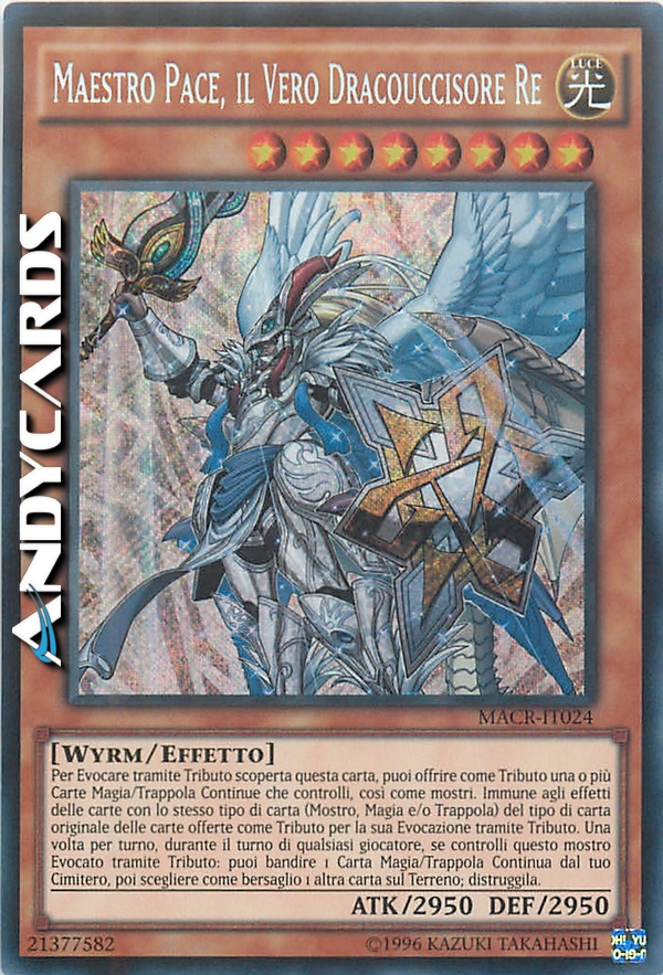 Per Evocare tramite Tributo scoperta questa carta, puoi offrire come Tributo una o più Carte Magia/Trappola Continue che controlli, così come mostri. Immune agli effetti delle carte con lo stesso tipo di carta (Mostro, Magia e/o Trappola) del tipo di carta originale delle carte offerte come Tributo per la sua Evocazione tramite Tributo. Una volta per turno, durante il turno di qualsiasi giocatore, se controlli questo mostro Evocato tramite Tributo: puoi bandire 1 Carta Magia/Trappola Continua dal tuo Cimitero, poi scegliere come bersaglio 1 altra carta sul Terreno; distruggila.
