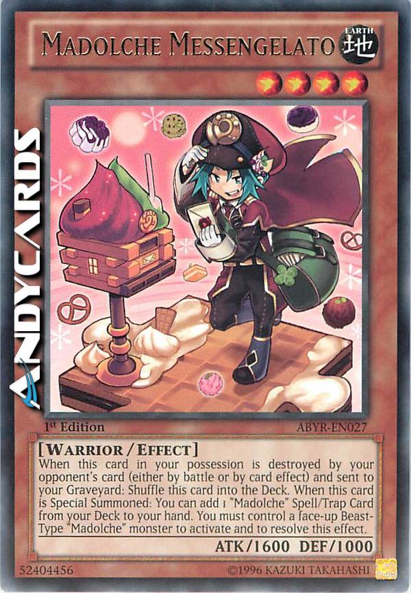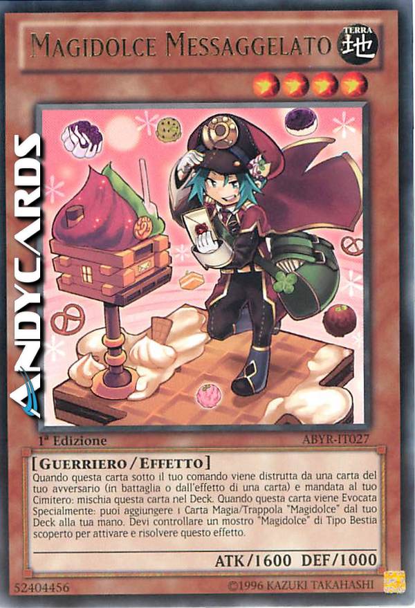 Se questa carta sotto il tuo comando viene distrutta da una carta dell'avversario e mandata al tuo Cimitero: mischia questa carta nel Deck. Quando questa carta viene Evocata Specialmente: puoi aggiungere 1 Magia/Trappola "Magidolce" dal tuo Deck alla tua mano. Devi controllare un mostro "Magidolce" Bestia scoperto per attivare e risolvere questo effetto.