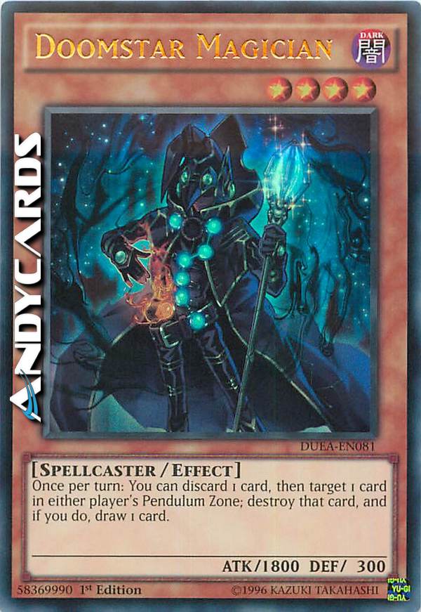 Una volta per turno: puoi scartare 1 carta, poi scegliere come bersaglio 1 carta nella Zona Pendulum di qualsiasi giocatore; distruggi quella carta e, se lo fai, pesca 1 carta.