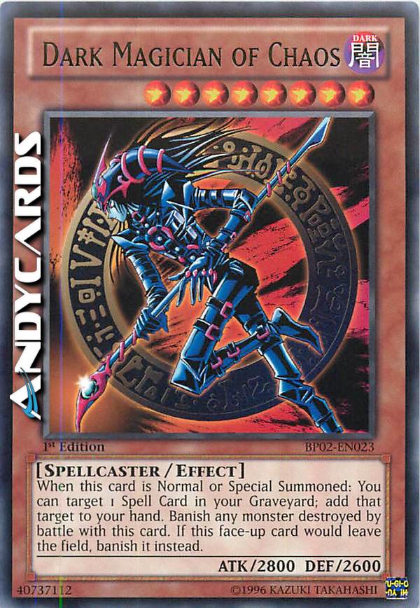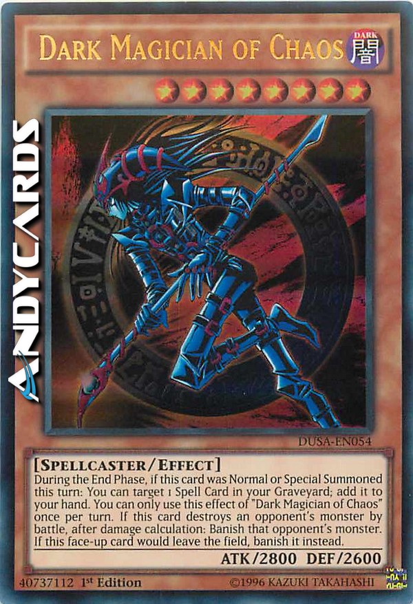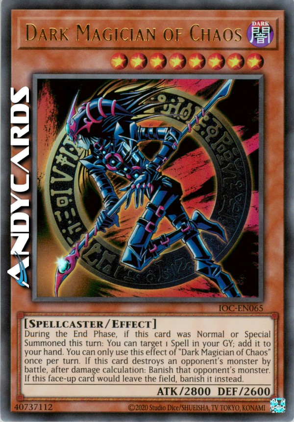 During the End Phase, if this card was Normal or Special Summoned this turn: You can target 1 Spell in your GY; add it to your hand. You can only use this effect of "Dark Magician of Chaos" once per turn. If this card destroys an opponent's monster by battle, after damage calculation: Banish that opponent's monster. If this face-up card would leave the field, banish it instead.