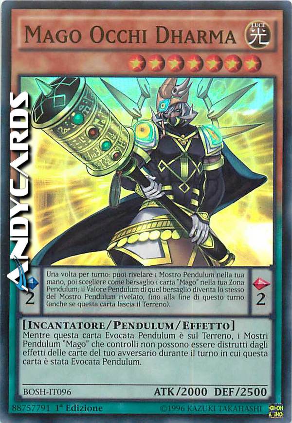 Una volta per turno: puoi rivelare 1 Mostro Pendulum nella tua mano, poi scegliere come bersaglio 1 carta "Mago" nella tua Zona Pendulum; il Valore Pendulum di quel bersaglio diventa lo stesso del Mostro Pendulum rivelato, fino alla fine di questo turno (anche se questa carta lascia il Terreno). Mentre questa carta Evocata Pendulum è sul Terreno, i Mostri Pendulum "Mago" che controlli non possono essere distrutti dagli effetti delle carte del tuo avversario durante il turno in cui questa carta è stata Evocata Pendulum.