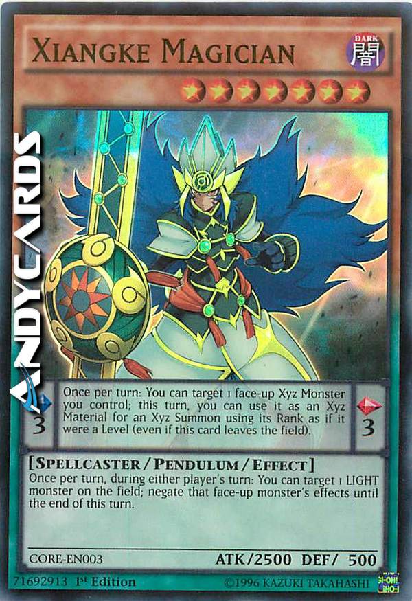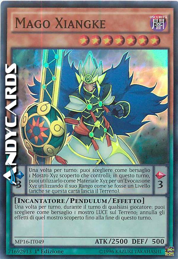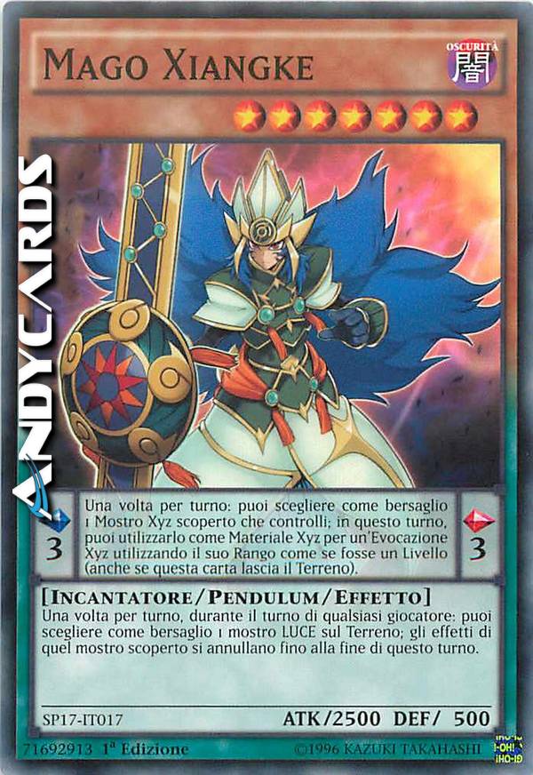 Una volta per turno, durante il turno di qualsiasi giocatore: puoi scegliere come bersaglio 1 mostro LUCE sul Terreno; annulla gli effetti di quel mostro scoperto fino alla fine di questo turno. Effetto Pendulum: Una volta per turno: puoi scegliere come bersaglio 1 Mostro Xyz scoperto che controlli; in questo turno, puoi utilizzarlo come Materiale Xyz per un'Evocazione Xyz utilizzando il suo Rango come se fosse un Livello (anche se questa carta lascia il Terreno).