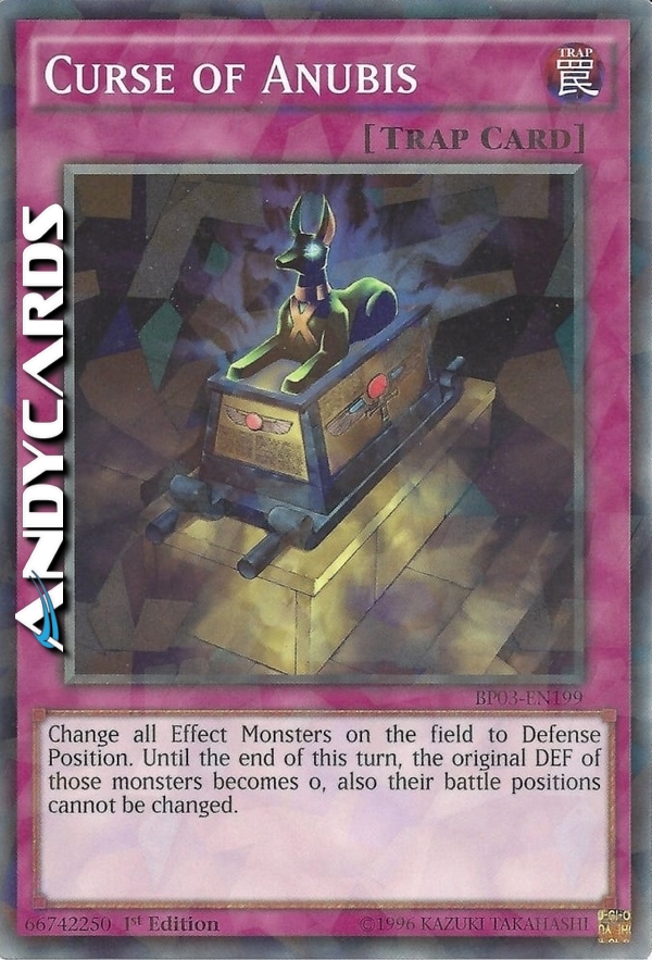 All face-up Effect Monsters on the field are changed to Defense Position. During the turn this card is activated, the original DEF of those Effect Monsters become 0 and their battle positions cannot be changed, except with a card effect.