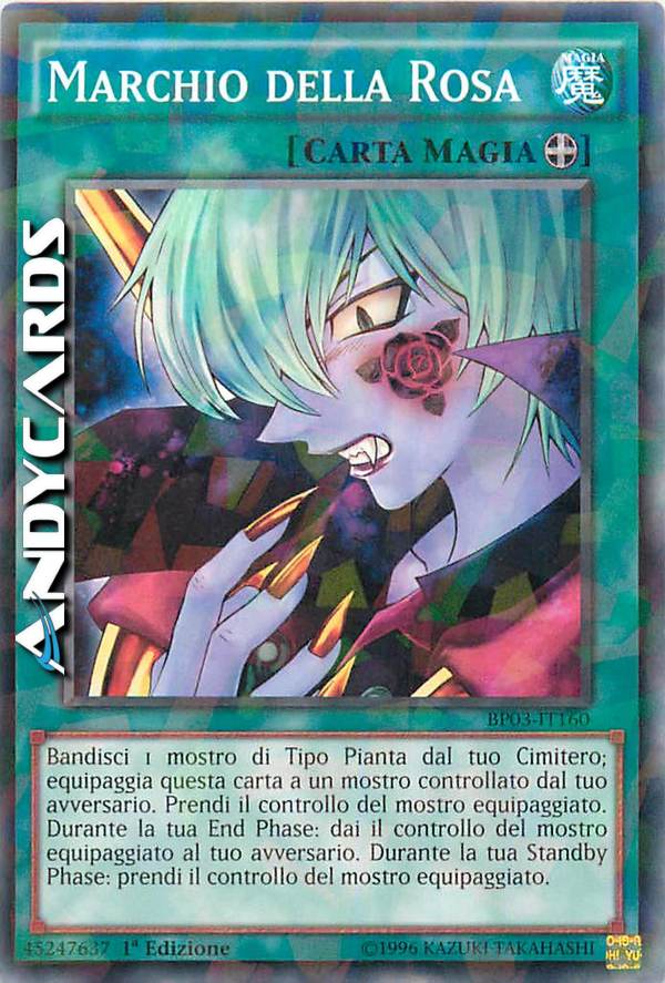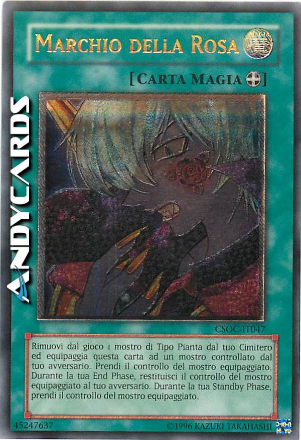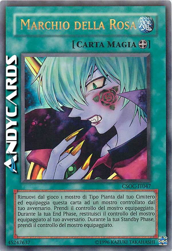Attiva questa carta bandendo 1 mostro Pianta dal tuo Cimitero, poi scegli come bersaglio 1 mostro scoperto controllato dal tuo avversario; equipaggia questa carta ad esso. Prendi il controllo del mostro equipaggiato. Una volta per turno, durante la tua End Phase: annulla l'effetto di questa carta fino alla tua prossima Standby Phase.