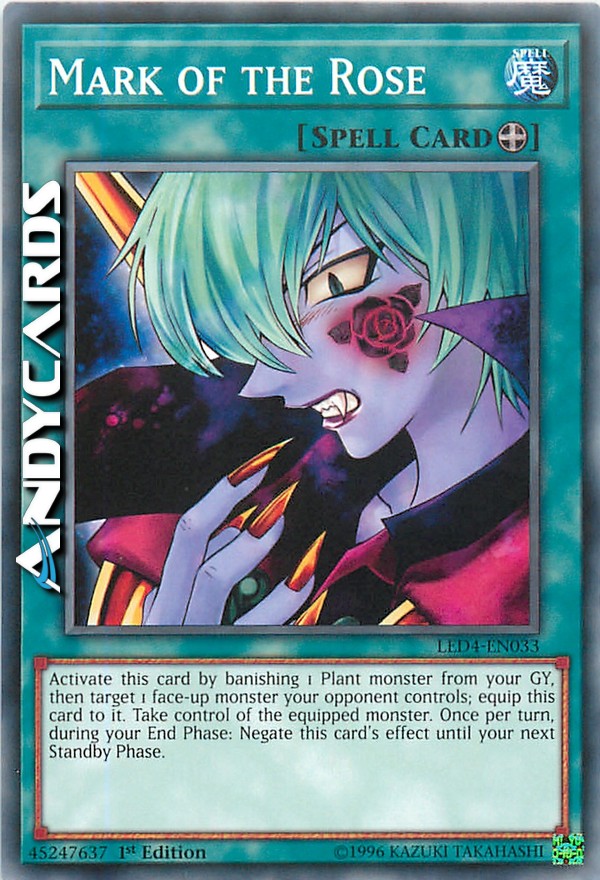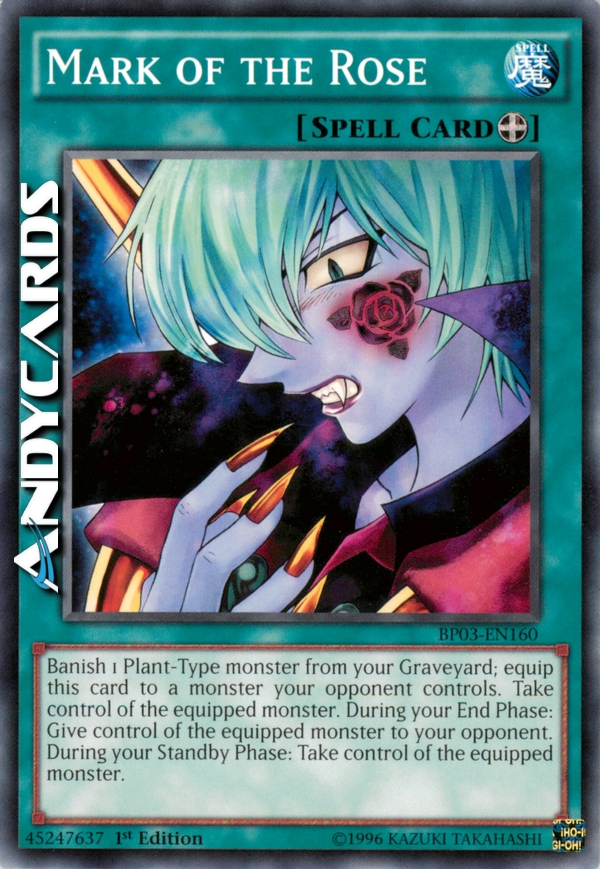 Remove from play 1 Plant-Type monster from your Graveyard and equip this card to a monster your opponent controls. Gain control of the equipped monster. During your End Phase, give control of the equipped monster to your opponent. During your Standby Phase, gain control of the equipped monster.