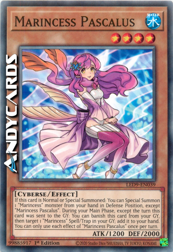 If this card is Normal or Special Summoned: You can Special Summon 1 "Marincess" monster from your hand in Defense Position, except "Marincess Pascalus". During your Main Phase, except the turn this card was sent to the GY: You can banish this card from your GY, then target 1 "Marincess" Spell/Trap in your GY; add it you your hand. You can only use each effect of "Marincess Pascalus" once per turn.