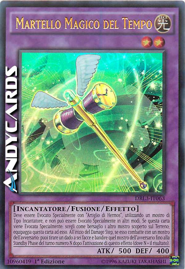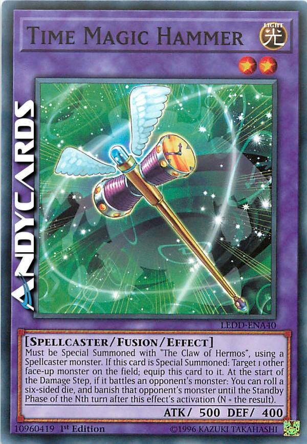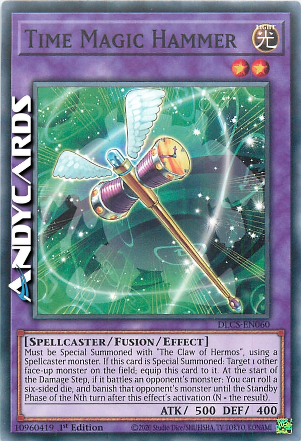 Deve essere Evocato Specialmente con "Artiglio di Hermos", utilizzando un mostro di Tipo Incantatore, e non può essere Evocato Specialmente in altri modi. Se questa carta viene Evocata Specialmente: scegli come bersaglio 1 altro mostro scoperto sul Terreno; equipaggia questa carta ad esso. All'inizio del Damage Step, se esso combatte con un mostro dell'avversario: puoi tirare un dado a sei facce e bandire quel mostro dell'avversario fino alla Standby Phase del turno numero N dopo l'attivazione di questo effetto (dove N = il risultato).