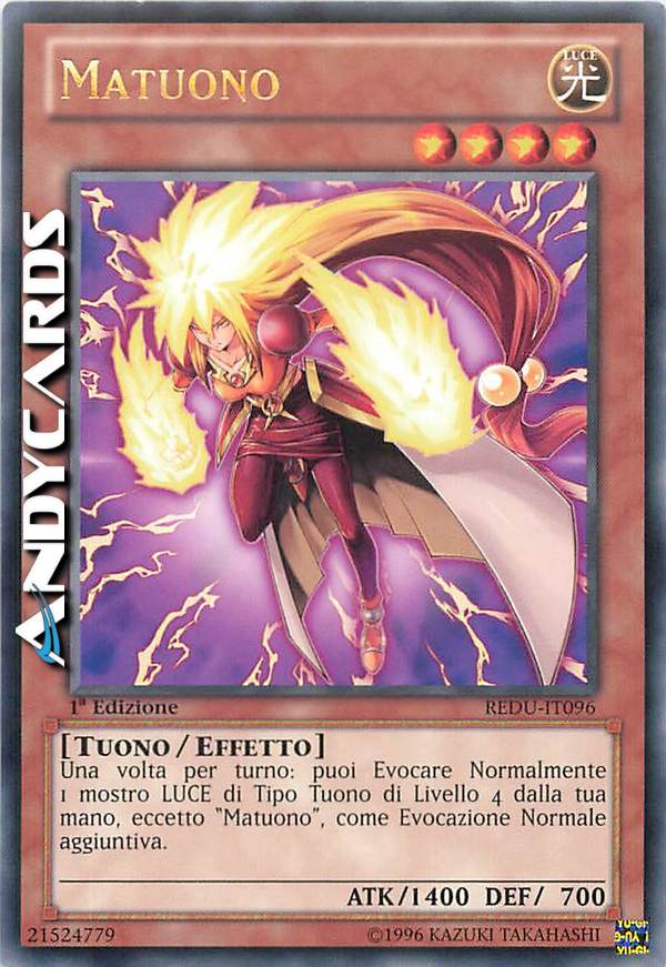 Una volta per turno: puoi Evocare Normalmente 1 mostro LUCE di Tipo Tuono di Livello 4 dalla tua mano, eccetto "Matuono", come Evocazione Normale aggiuntiva.