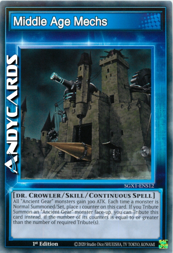 All "Ancient Gear" monsters gain 300 ATK. Each time a monster is Normal Summoned/Set, place 1 counter on this card. If you Tribute Summon an "Ancient Gear" monster face-up, you can Tribute this card instead, if the number of its counters is equal to or greater than the number of required Tribute(s).