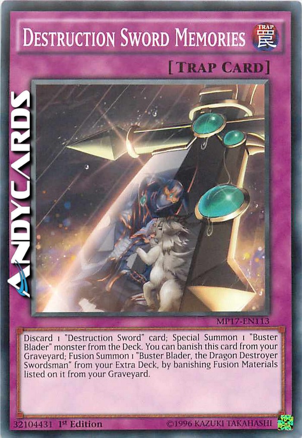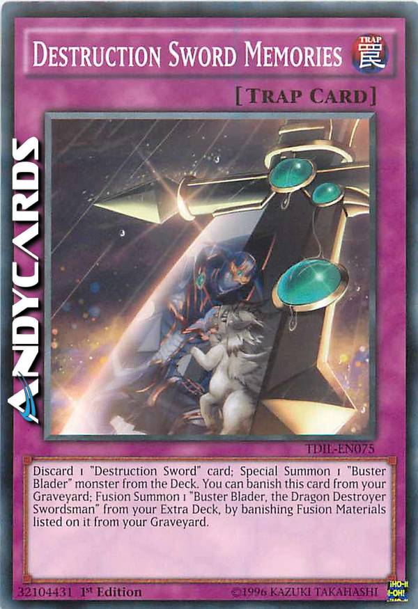 Discard 1 "Destruction Sword" card; Special Summon 1 "Buster Blader" monster from the Deck. You can banish this card from your Graveyard; Fusion Summon 1 "Buster Blader, the Dragon Destroyer Swordsman" from your Extra Deck, by banishing Fusion Materials listed on it from your Graveyard.