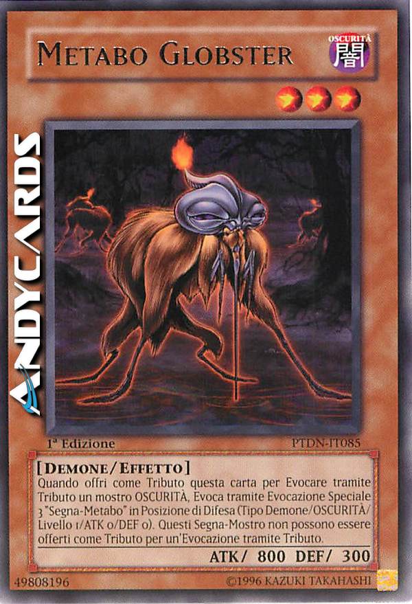 Quando offri come Tributo questa carta per Evocare tramite Tributo un mostro OSCURITA', Evoca tramite Evocazione Speciale 3 "Segna-Metabo" in Posizione di Difesa (Tipo Demone/OSCURITA'/Livello 1/ATK 0/DEF 0). Questi Segna-Mostro non possono essere offerti come Tributo per una Evocazione tramite Tributo.
