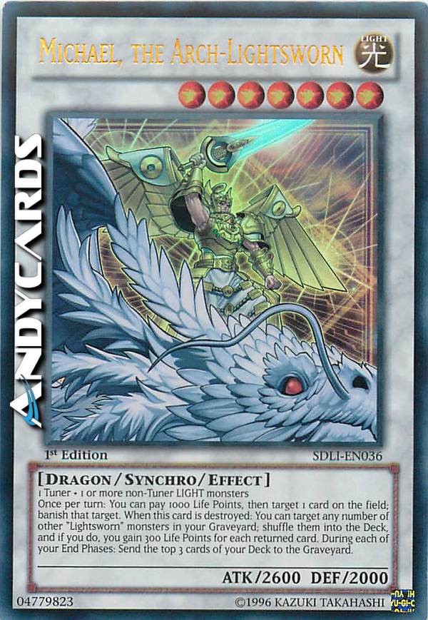 Once per turn: You can pay 1000 Life Points, then target 1 card on the field; banish that target. When this card is destroyed: You can target any number of other "Lightsworn" monsters in your Graveyard; shuffle them into the Deck, and if you do, you gain 300 Life Points for each returned card. During each of your End Phases: Send the top 3 cards of your Deck to the Graveyard.