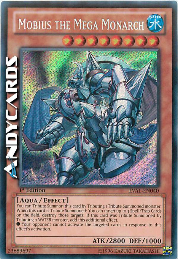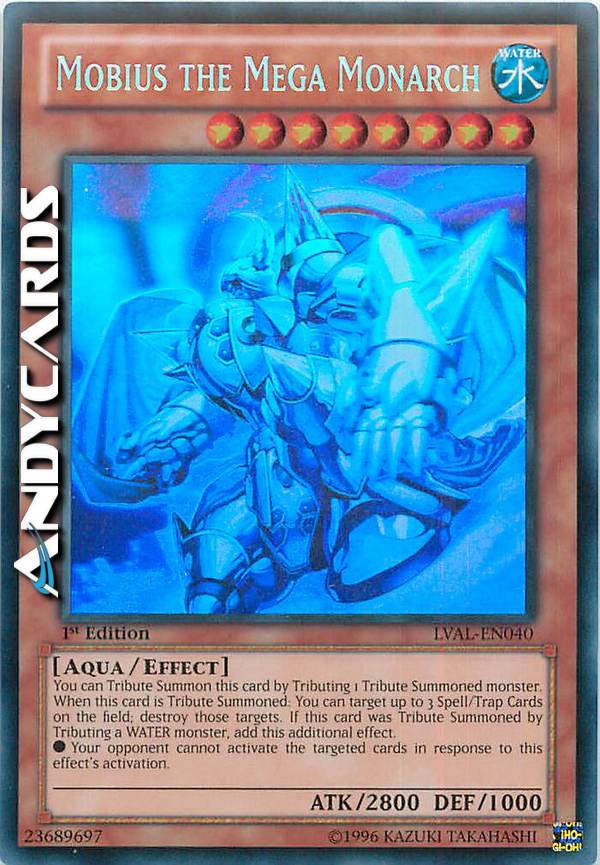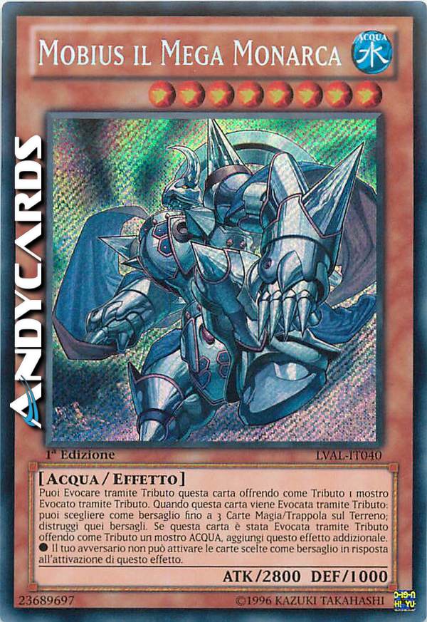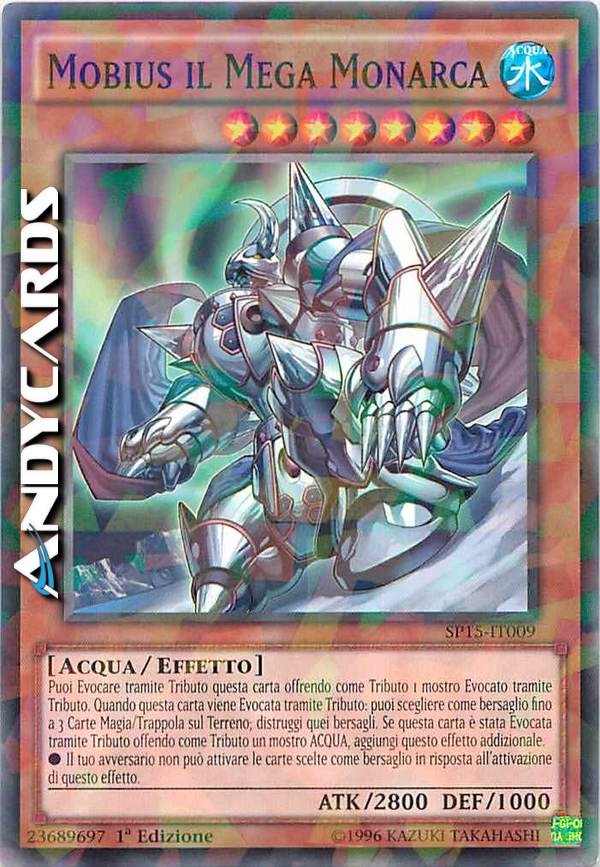 Puoi Evocare tramite Tributo questa carta offrendo come Tributo 1 mostro Evocato tramite Tributo. Quando questa carta viene Evocata tramite Tributo: puoi scegliere come bersaglio fino a 3 Carte Magia/Trappola sul Terreno; distruggi quei bersaglio. Se questa carta è stata Evocata tramite Tributo offrendo come Tributo un mostro Acqua, aggiungi questo effetto addizionale.