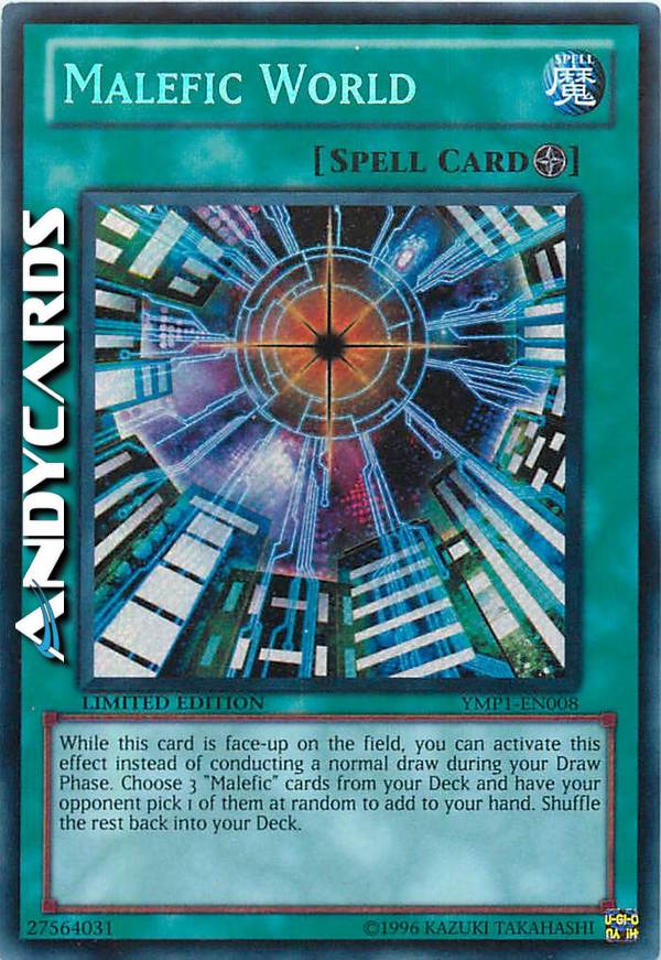 While this card is face-up on the field, you can activate this effect instead of conducting a normal draw during your Draw Phase. Choose 3 "Malefic" cards from your Deck and have your opponent pick 1 of them at random to add to your hand. Shuffle the rest back into your Deck.