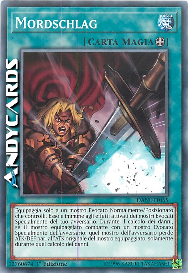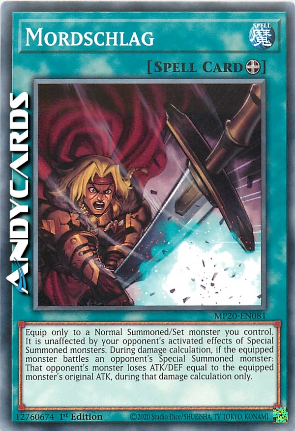 Equipaggia solo a un mostro Evocato Normalmente/Posizionato che controlli. Esso è immune agli effetti attivati dei mostri Evocati Specialmente del tuo avversario. Durante il calcolo dei danni, se il mostro equipaggiato combatte con un mostro Evocato Specialmente dell'avversario: quel mostro dell'avversario perde ATK/DEF pari all'ATK originale del mostro equipaggiato, solamente durante quel calcolo dei danni.