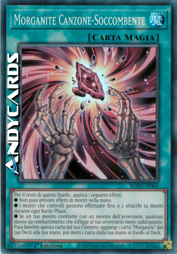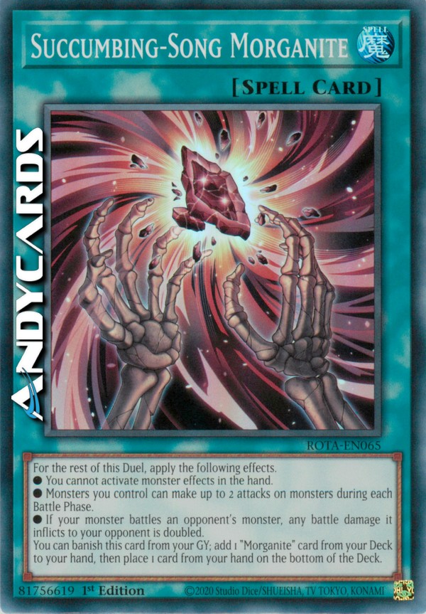 Puoi bandire questa carta dal tuo Cimitero; aggiungi 1 carta "Morganite" dal tuo Deck alla tua mano, poi metti 1 carta dalla tua mano in fondo al Deck.