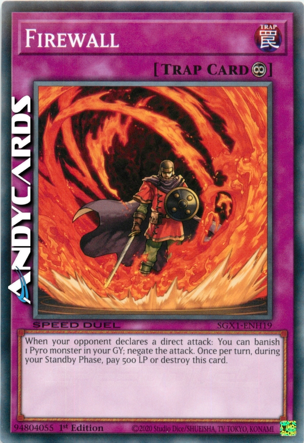 Quando il tuo avversario dichiara un attacco diretto, puoi annullare l'attacco di quel mostro rimuovendo dal gioco 1 mostro di Tipo Pyro dal tuo Cimitero. Paga 500 Life Points durante ogni tua Standby Phase. Se non lo fai, distruggi questa carta.