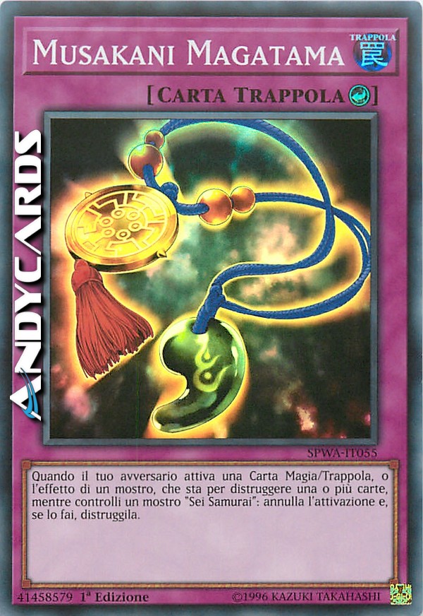Quando il tuo avversario attiva una Carta Magia, Carta Trappola o effetto di un mostro che sta per distruggere una o più carte, mentre controlli un mostro "Sei Samurai" scoperto: annulla l'attivazione e, se lo fai, distruggila.