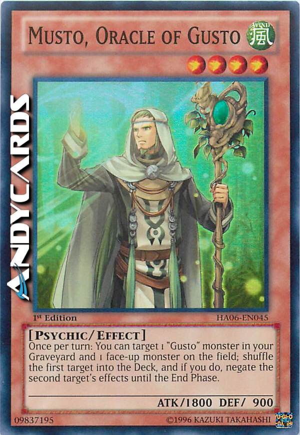 Una volta per turno: puoi scegliere come bersaglio 1 mostro "Gusto" nel tuo Cimitero e 1 mostro scoperto sul Terreno; mischia il primo bersaglio nel Deck e, se lo fai, annulla gli effetti del secondo bersaglio fino alla End Phase.