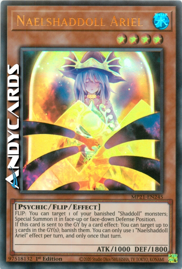 If this card is sent to the GY by a card effect: You can target up to 3 cards in the GY(s); banish them. You can only use 1 "Naelshaddoll Ariel" effect per turn, and only once that turn.